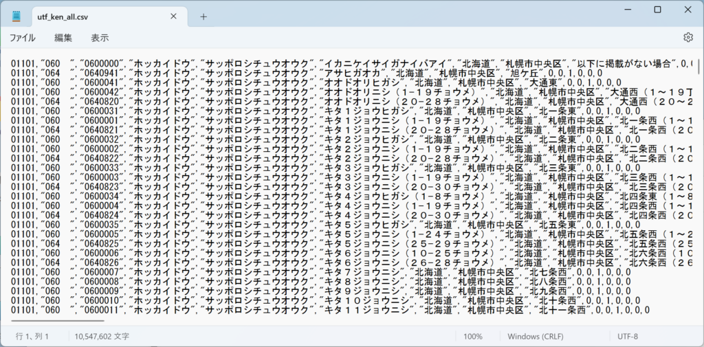 今回初期データは日本郵便の郵便番号データを利用させていただきました
